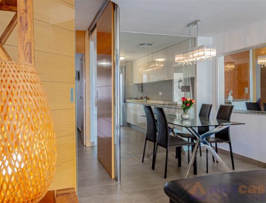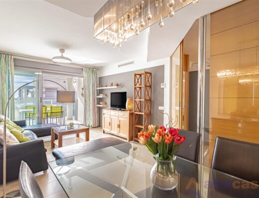 Moderno y totalmente equipado, cuenta con dos amplias habitaciones con armarios empotrados, baño completo, salón comedor con salida a la terraza, cocina semi abierta muy luminosa, aire acondicionado centralizado y plaza de garaje en el subterráneo del edificio.